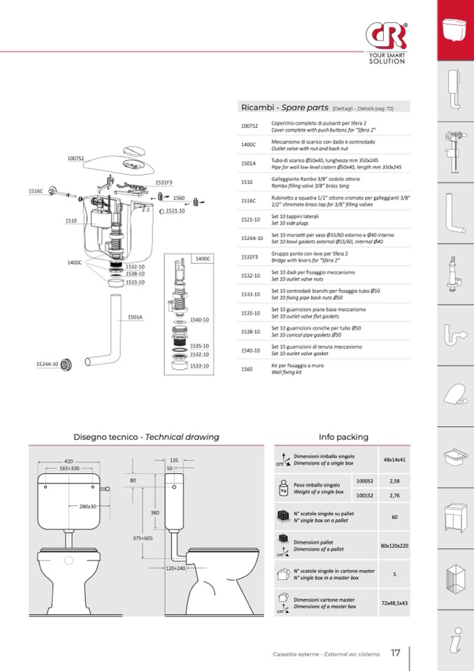 Pipe for wall low-level cistern Ø50x40, length mm 350x245