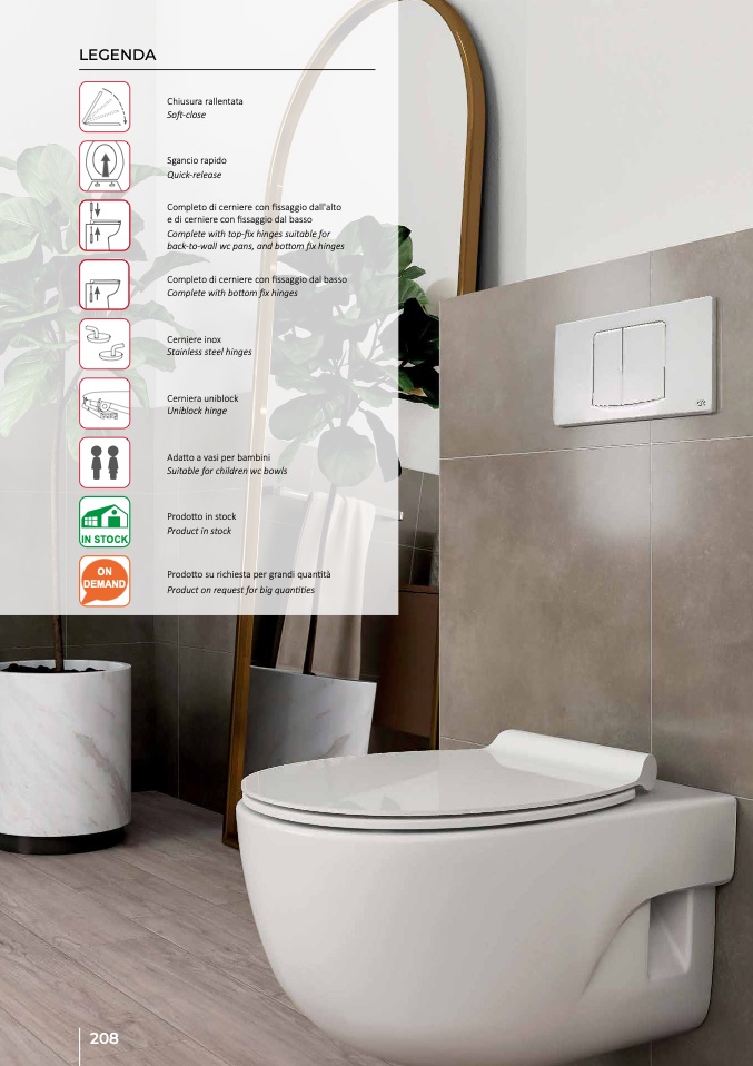back-to-wall wc pans, and bottom fix hinges