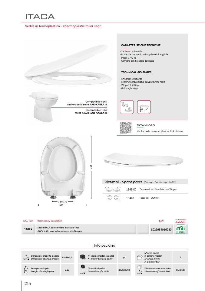 ITACA toilet seat with stainless steel hinges