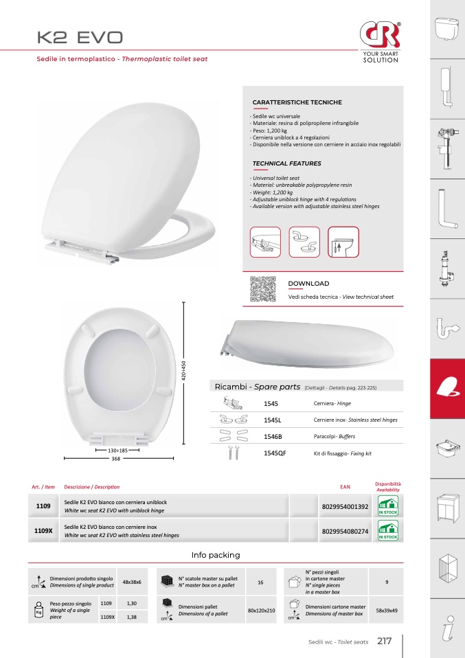 - Disponibile nella versione con cerniere in acciaio inox regolabili