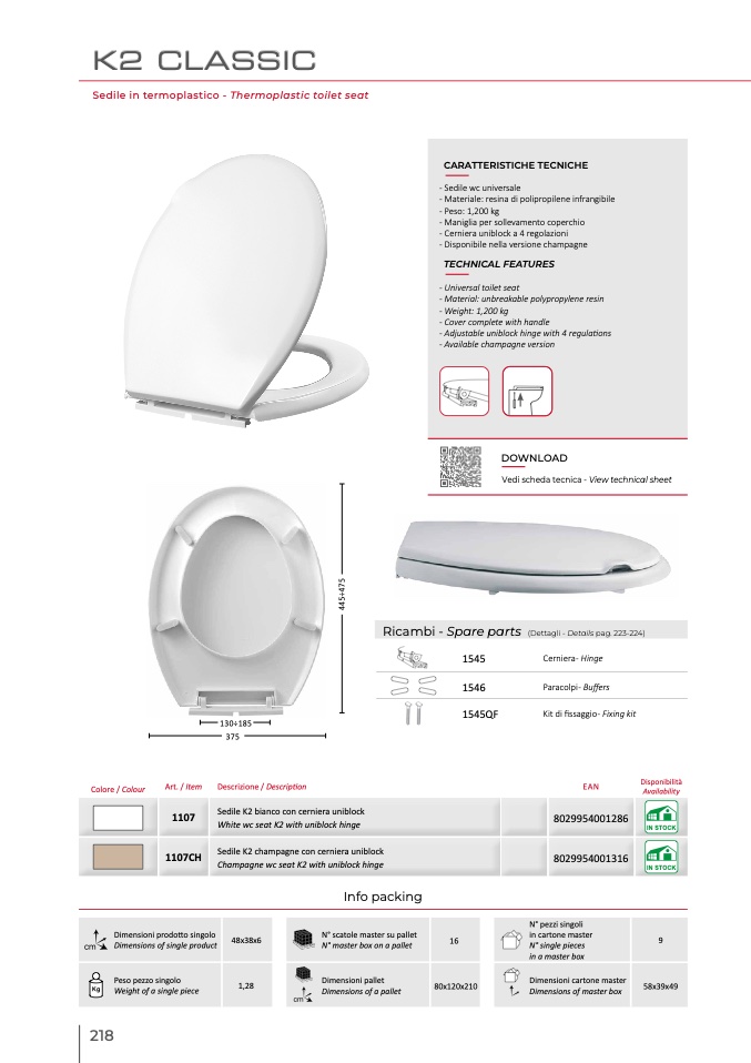 White wc seat K2 with uniblock hinge