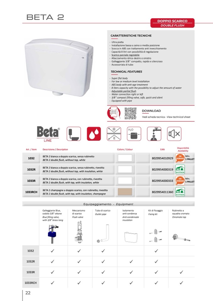 BETA 2 bianca a doppio scarico, con rubinetto, rivestita