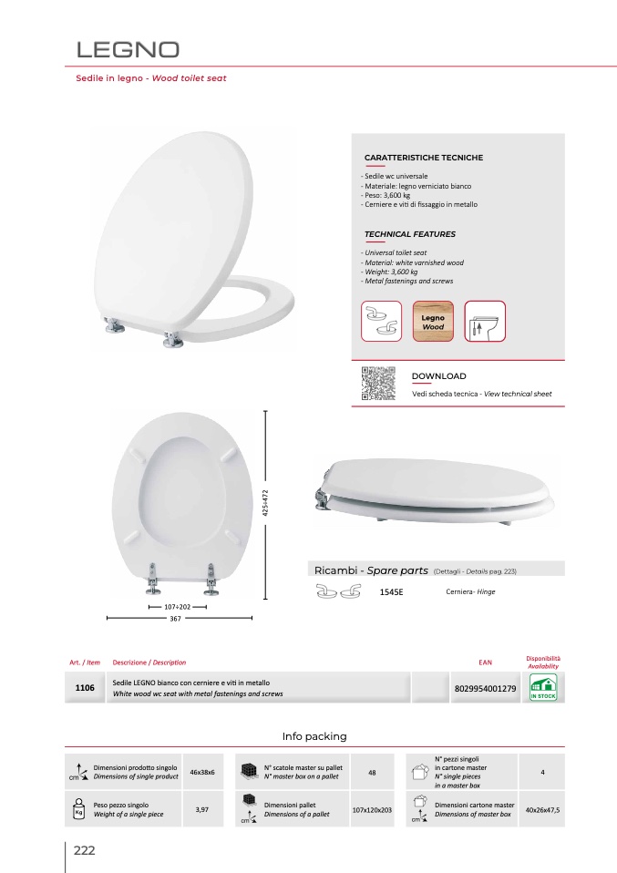 Sedile LEGNO bianco con cerniere e viti in metallo