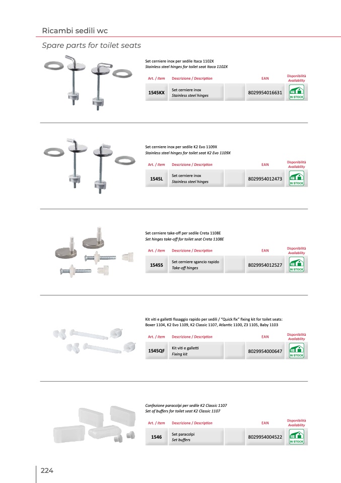 Kit viti e galletti fissaggio rapido per sedili / “Quick fix” fixing kit for toilet seats: