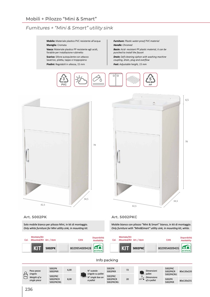 Only furniture with “Mini&Smart” utility sink, in mounting kit, white.