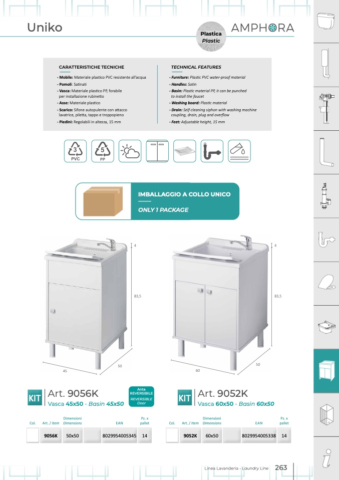 - Vasca: Materiale plastico PP, forabile