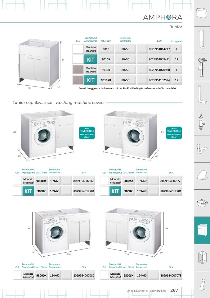 Asse di lavaggio non incluso nella misura 80x50 - Washing board not included in size 80x50