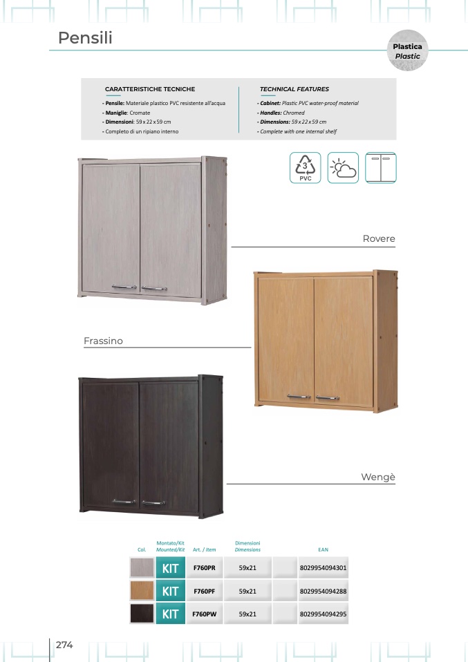 - Pensile: Materiale plastico PVC resistente all’acqua