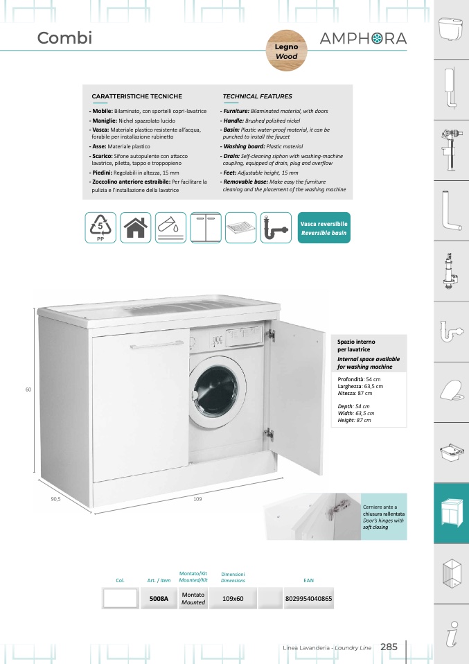 - Mobile: Bilaminato, con sportelli copri-lavatrice