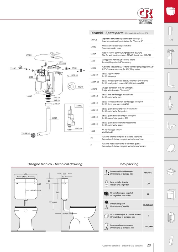 Pipe for wall low-level cistern Ø50x40, length mm 350x245