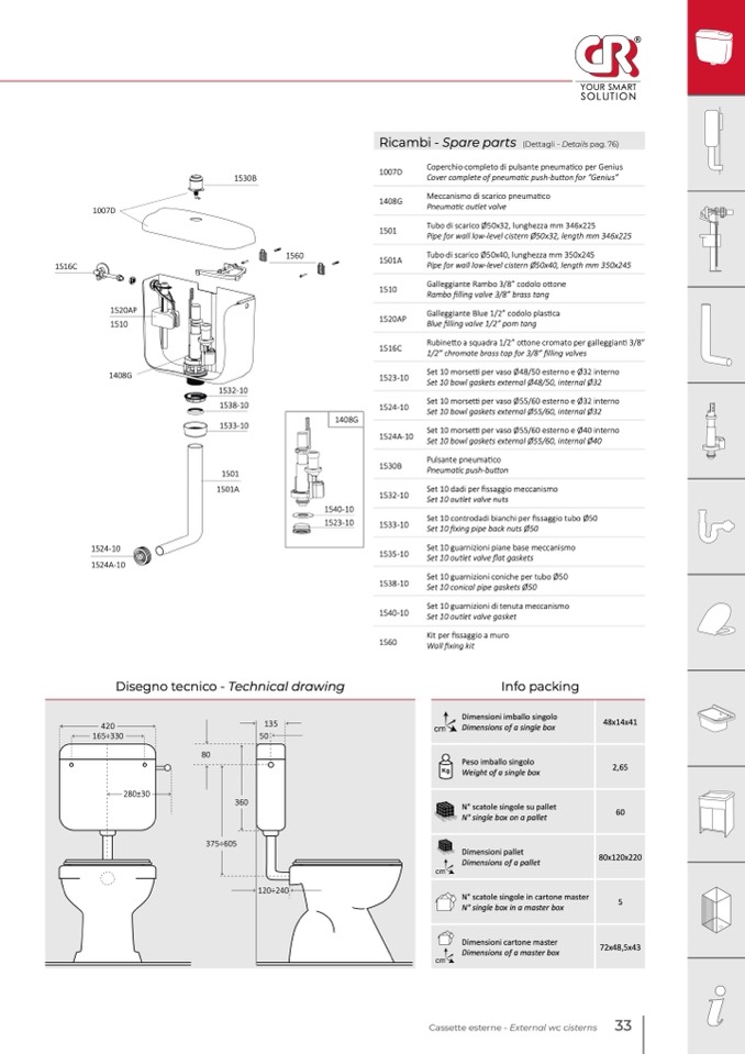Pipe for wall low-level cistern Ø50x40, length mm 350x245