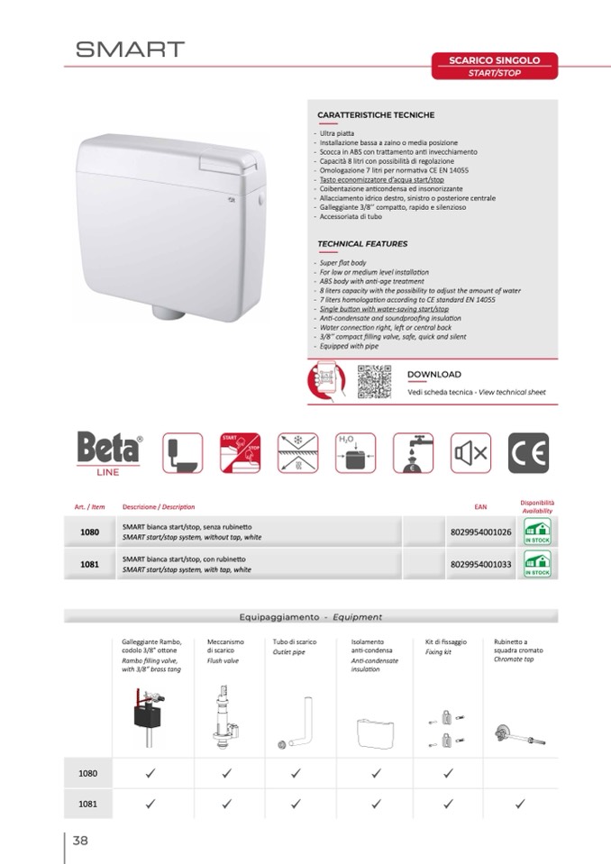 - 3/8’’ compact filling valve, safe, quick and silent