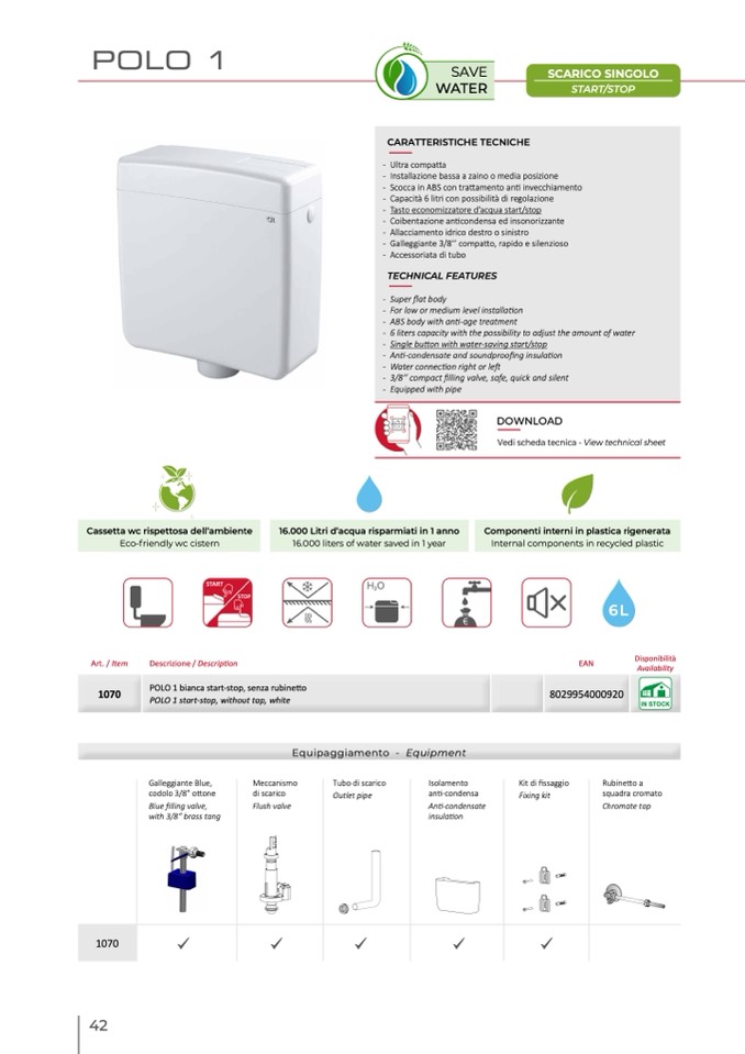 - Galleggiante 3/8’’ compatto, rapido e silenzioso