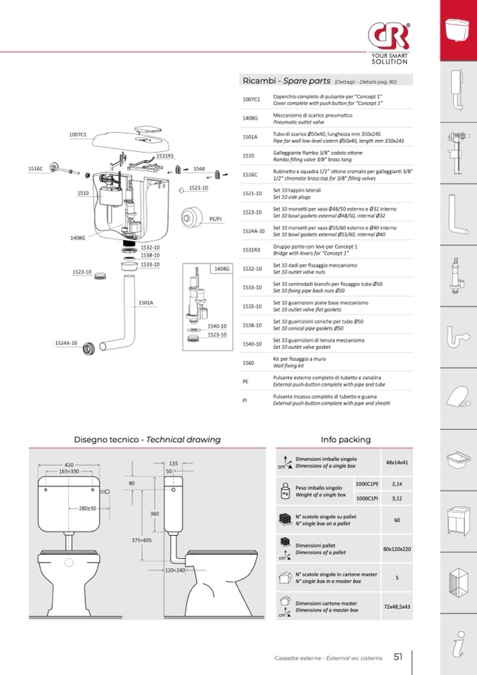 Pipe for wall low-level cistern Ø50x40, length mm 350x245