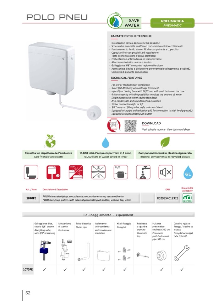 - Equipped with pipe and reduction ø32 for connection to high level pipes ø32