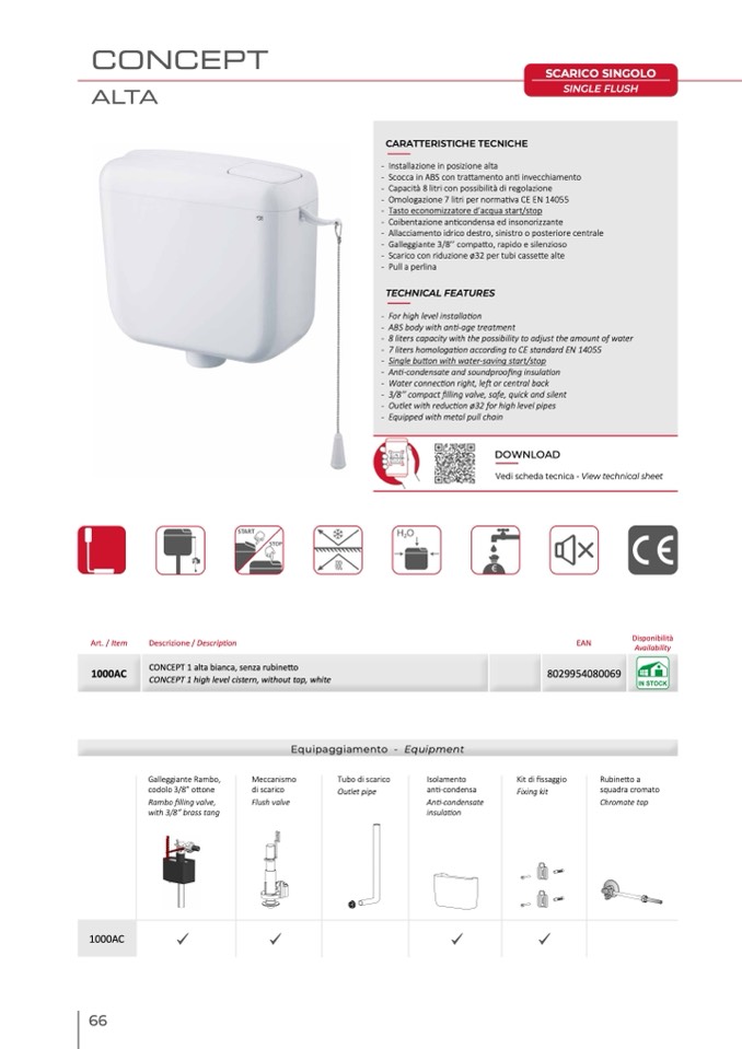 CONCEPT 1 high level cistern, without tap, white