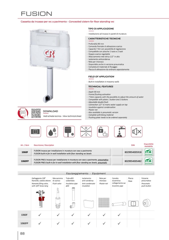 FUSION incasso per installazione in muratura con vaso a pavimento