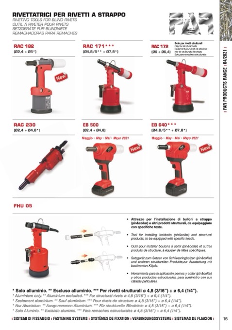 * Seulement aluminium. ** Sauf aluminium. *** Pour rivets de structure ø 4,8 (3/16”) ÷ ø 6,4 (1/4”).