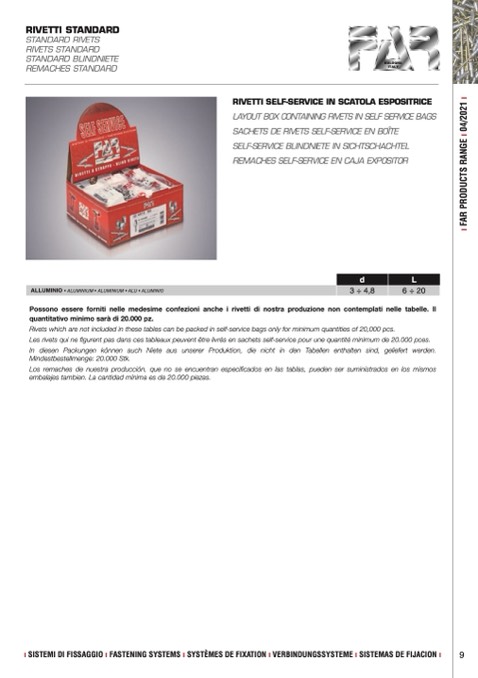 Rivets which are not included in these tables can be packed in self-service bags only for minimum quantities of 20,000 pcs.