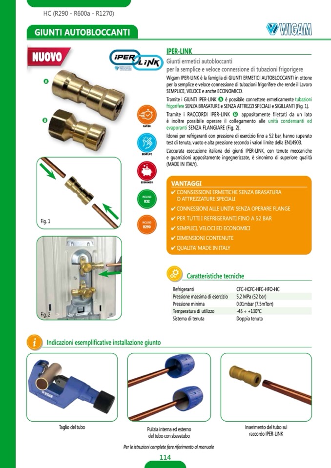 Wigam IPER-LINK è la famiglia di GIUNTI ERMETICI AUTOBLOCCANTI in ottone