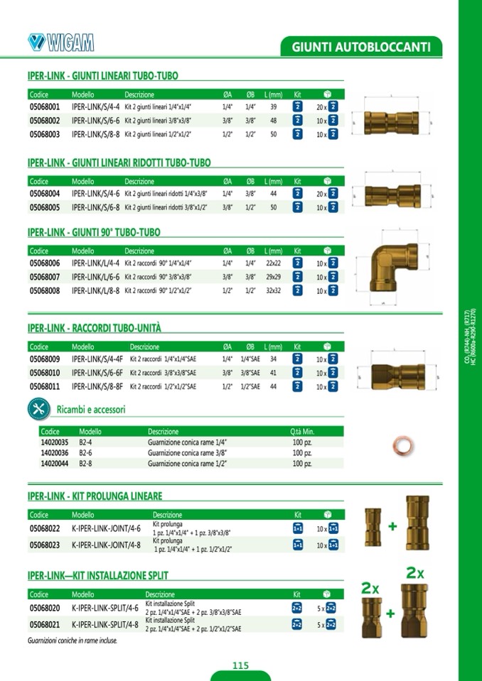 2 pz. 1/4”x1/4”SAE + 2 pz. 3/8”x3/8”SAE