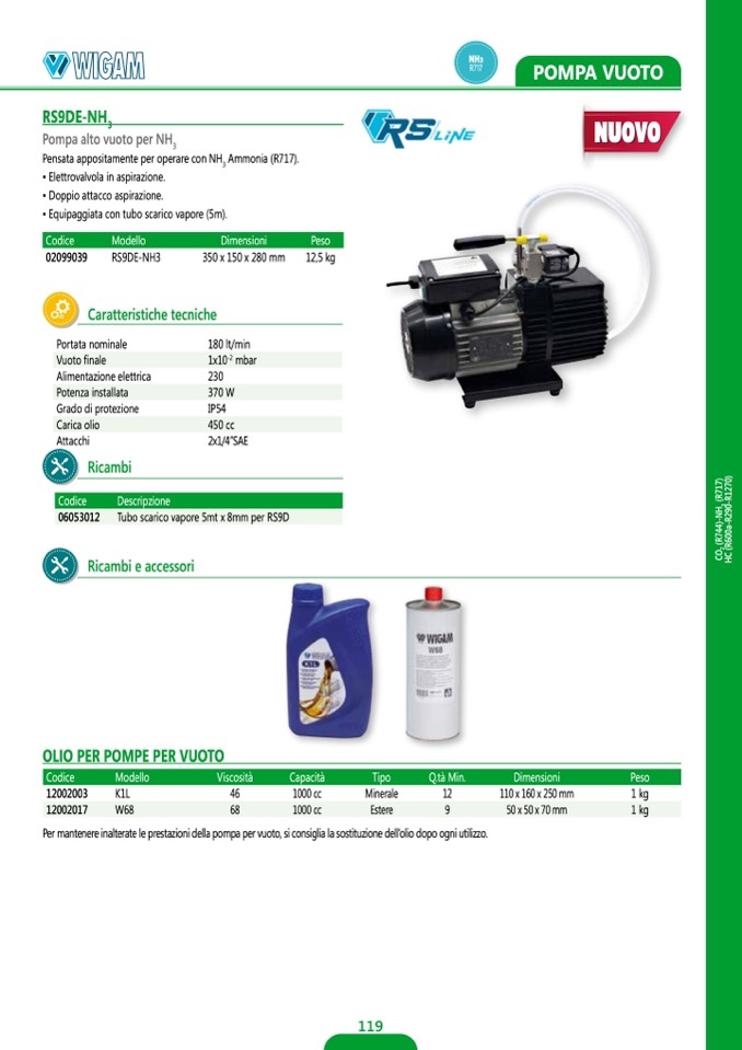 Per mantenere inalterate le prestazioni della pompa per vuoto, si consiglia la sostituzione dell’olio dopo ogni utilizzo.
