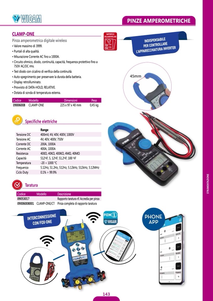 Pinza completa di rapporto taratura