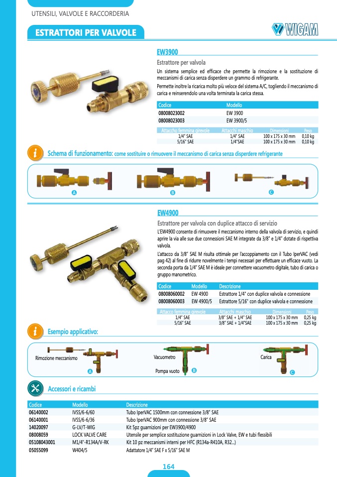 L’EW4900 consente di rimuovere il meccanismo interno della valvola di servizio, e quindi