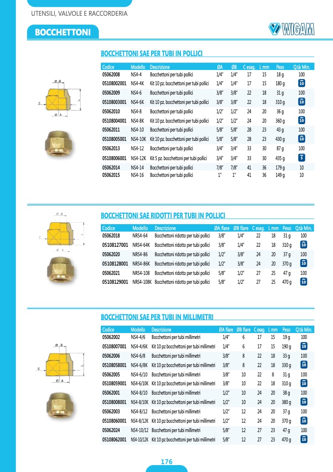 Kit 10 pz. bocchettoni per tubi pollici
