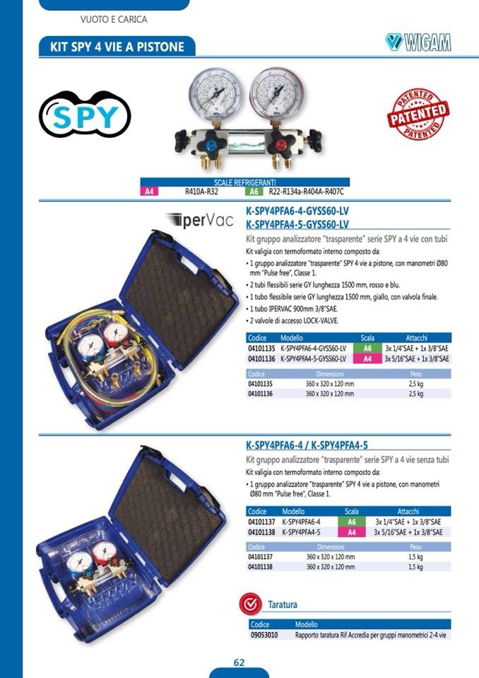 • 1 gruppo analizzatore “trasparente” SPY 4 vie a pistone, con manometri Ø80