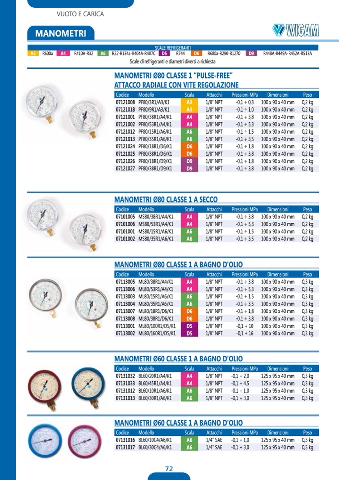 MANOMETRI Ø80 CLASSE 1 “PULSE-FREE”