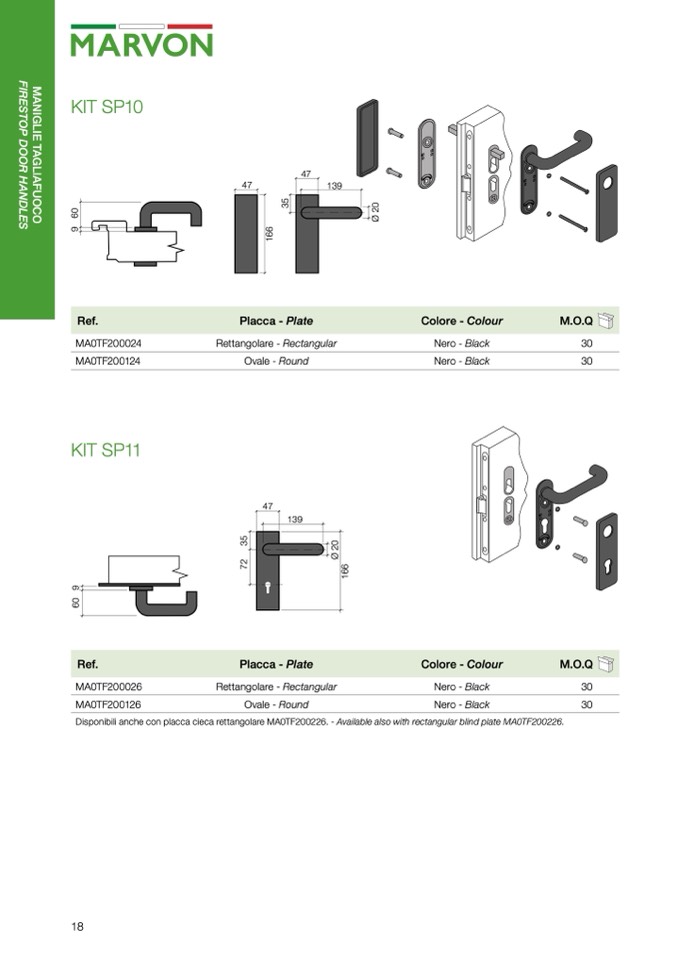 Disponibili anche con placca cieca rettangolare MA0TF200226. - Available also with rectangular blind plate MA0TF200226.