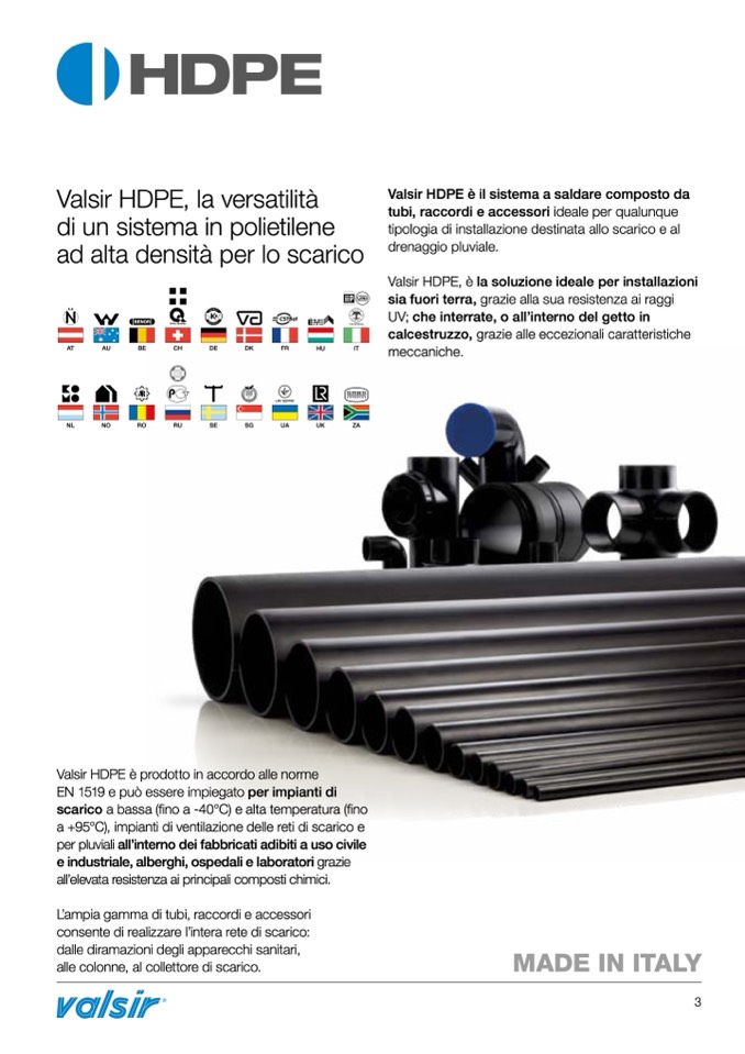 Valsir HDPE è prodotto in accordo alle norme