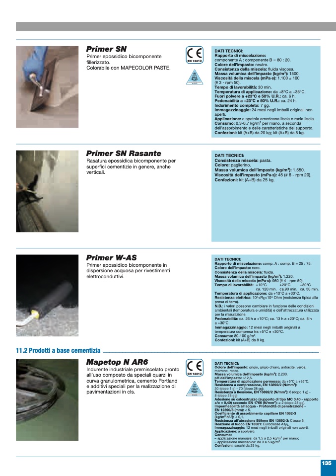 – applicazione manuale: da 1,5 a 2,5 kg/m2 per mano;
