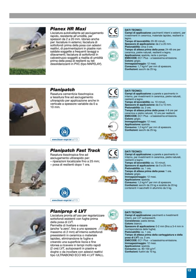 Consumo: 1,7 kg/m2 per mm di spessore.