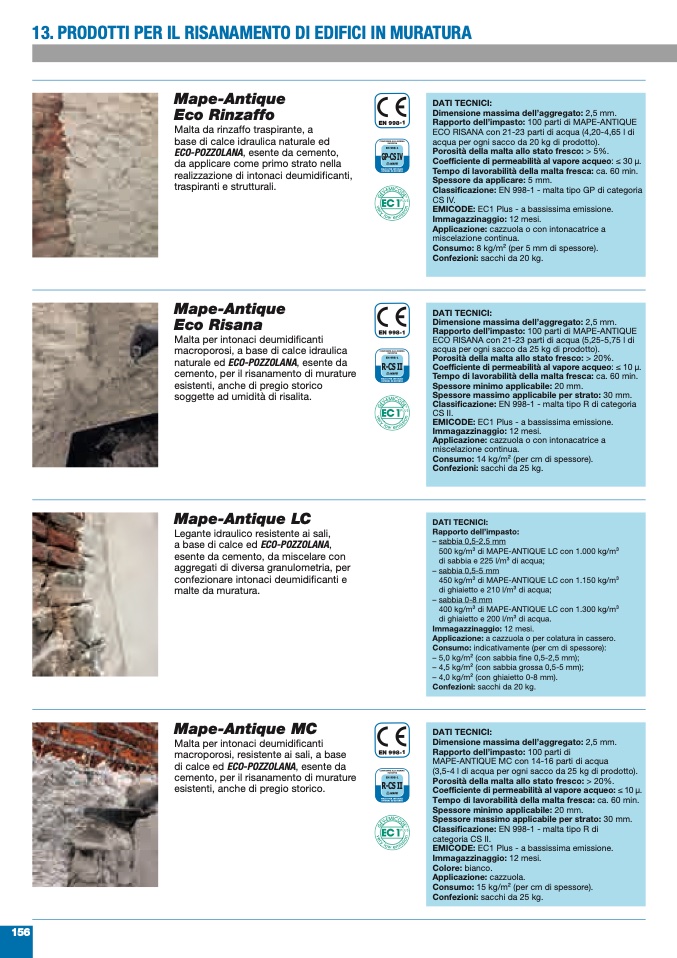 400 kg/m3 di MAPE-ANTIQUE LC con 1.300 kg/m3