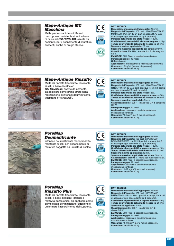 Classificazione: EN 998-1 - malta tipo GP di categoria