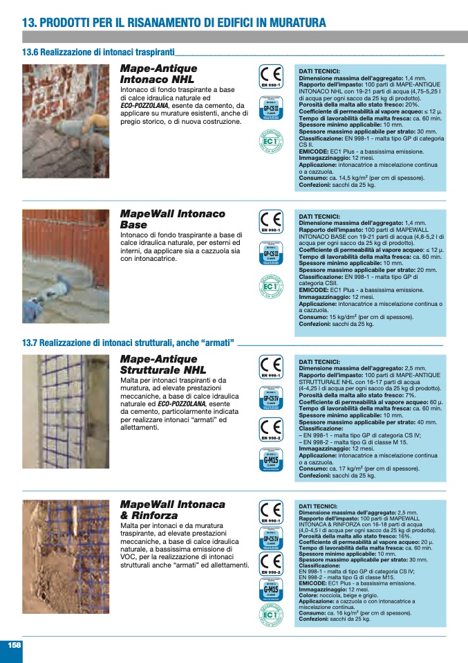 – EN 998-1 - malta tipo GP di categoria CS IV;