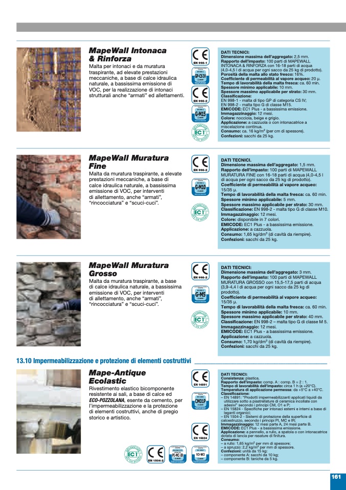 EN 998-1 - malta di tipo GP di categoria CS IV;