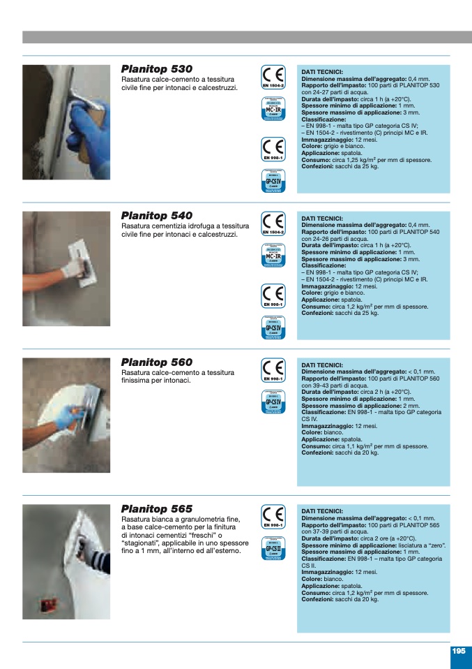 – EN 998-1 - malta tipo GP categoria CS IV;