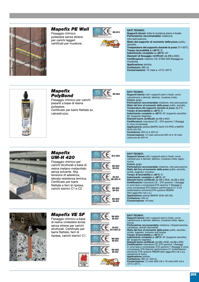 Certificazioni: marcatura CE; ETA opzione 1 (fissaggi