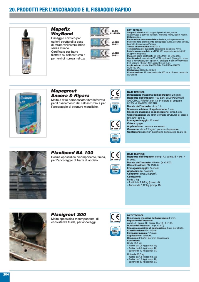 Classificazione: EN 1504-6.