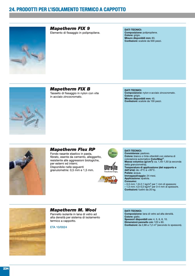 – 0,5 mm: 1,9-2,1 kg/m2 per 1 mm di spessore;