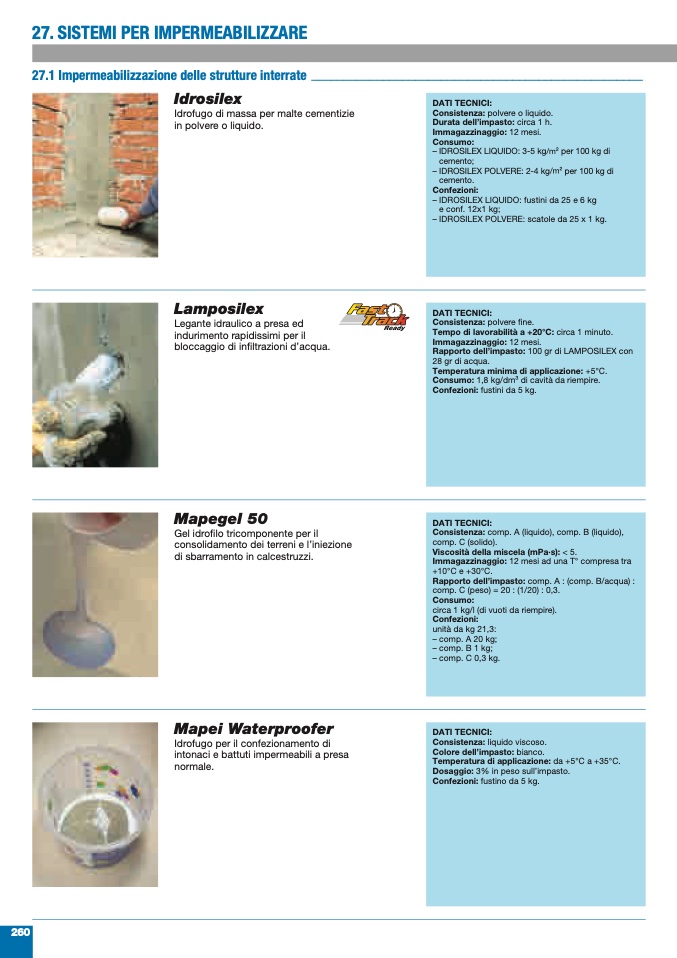 – IDROSILEX POLVERE: scatole da 25 x 1 kg.