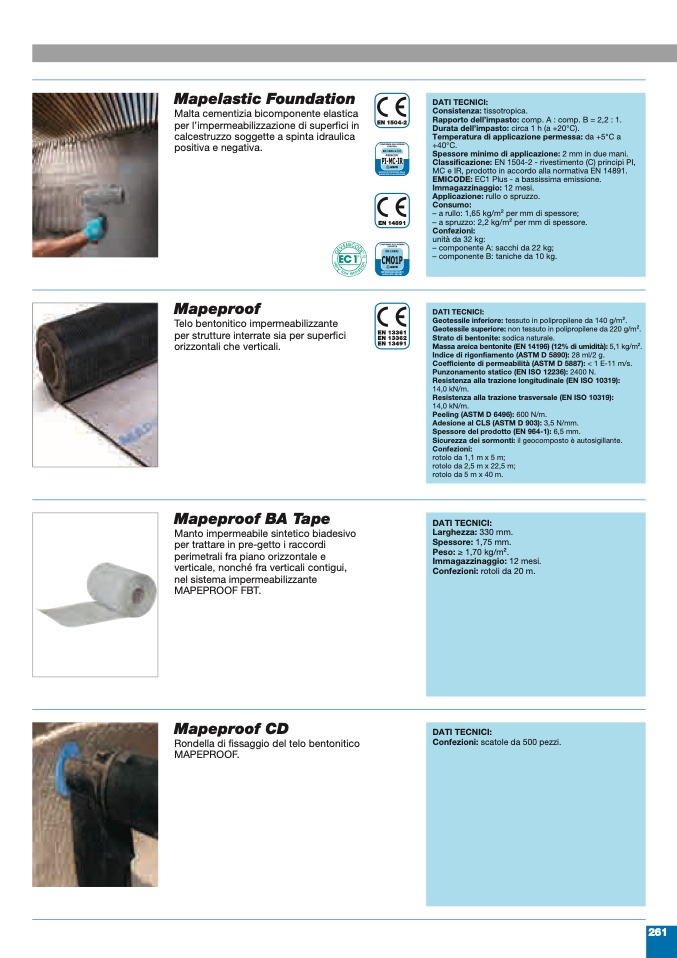 Massa areica bentonite (EN 14196) (12% di umidità): 5,1 kg/m2.