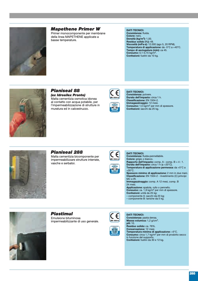 Spessore minimo di applicazione: 2 mm in due mani.