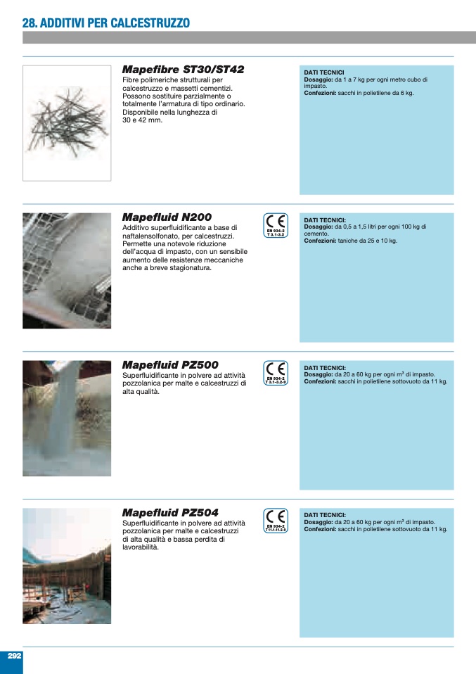 Dosaggio: da 20 a 60 kg per ogni m3 di impasto.