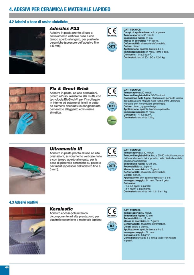dell’adesivo che rifluisce nelle fughe entro 20 minuti