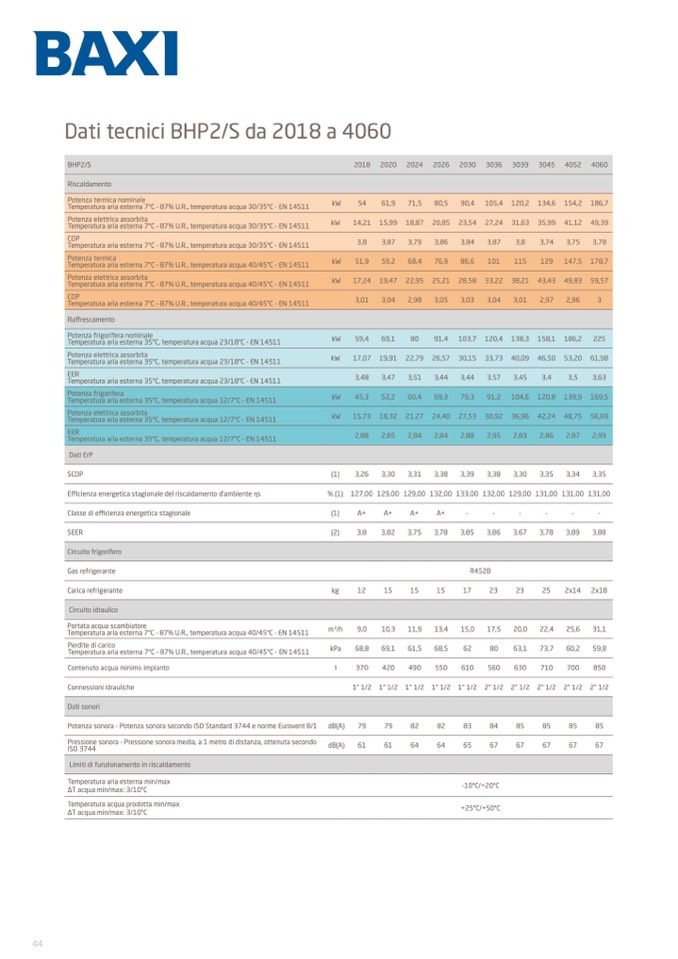 Dati tecnici BHP2/S da 2018 a 4060