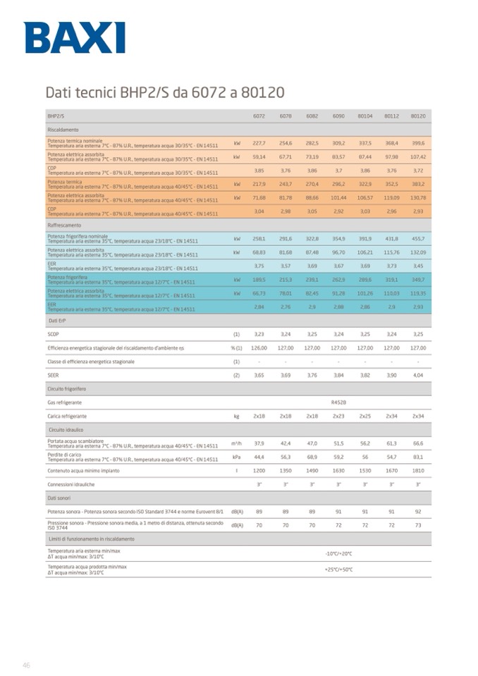 Temperatura aria esterna 7°C – 87% U.R., temperatura acqua 40/45°C - EN 14511